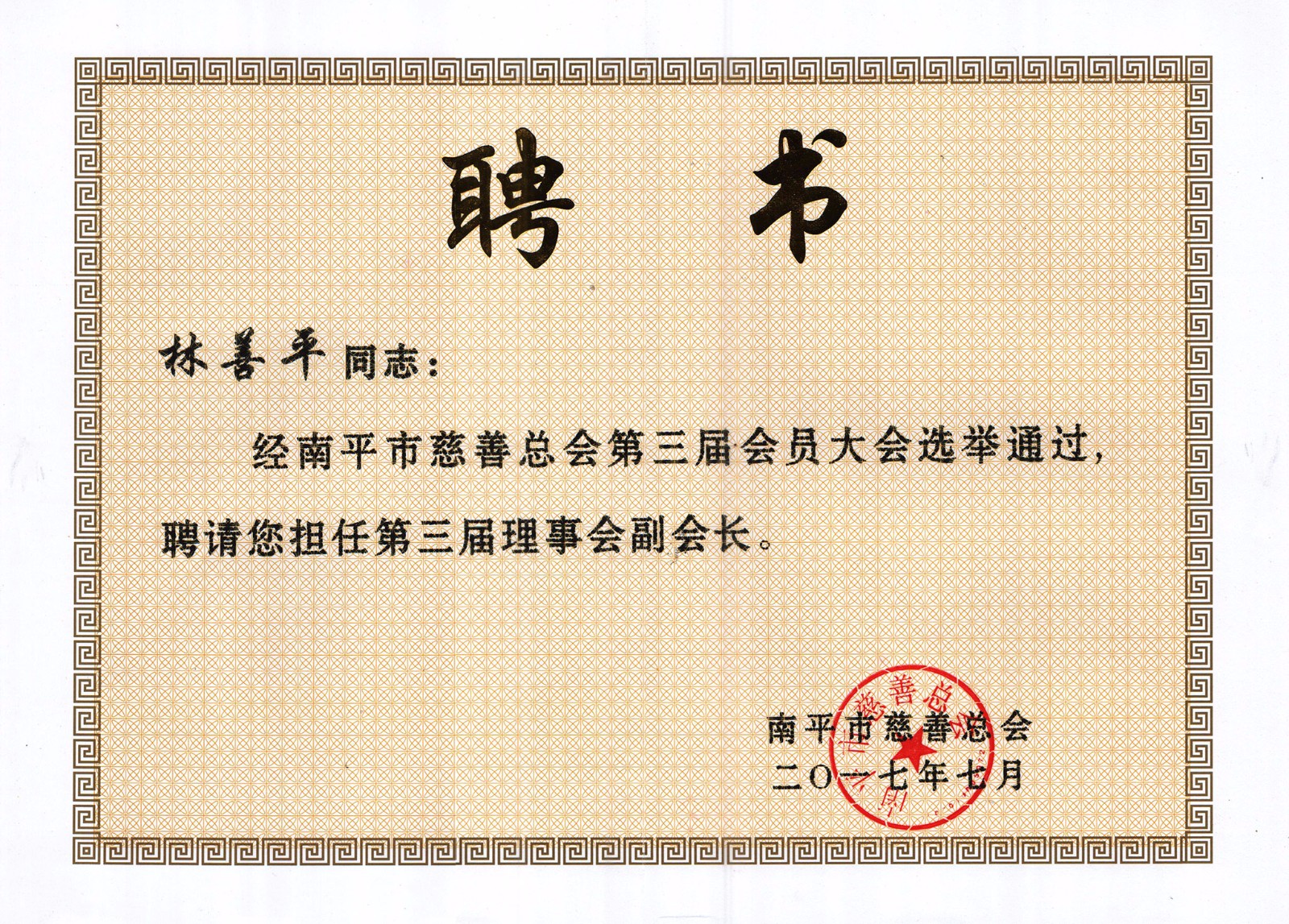 2017年7月28日,南平市慈善捐贈大會暨市慈善總會換屆會議在南平市委舉行,福建順昌虹潤董事長林善平再次當(dāng)選為南平市慈善總會第三屆理事會副會長,這也是林善平董事長第三次當(dāng)選此職。同時,在本次慈善捐贈大會上,他再次向市慈善總會捐款50萬元。他表示,他還將一如既往,繼續(xù)加大對社會公益事業(yè)的支持力度,積極投身公益和慈善事業(yè),為南平市的慈善事業(yè)作出更大的貢獻。目前,林善平董事長各項公益捐款累計已達1000余萬元。