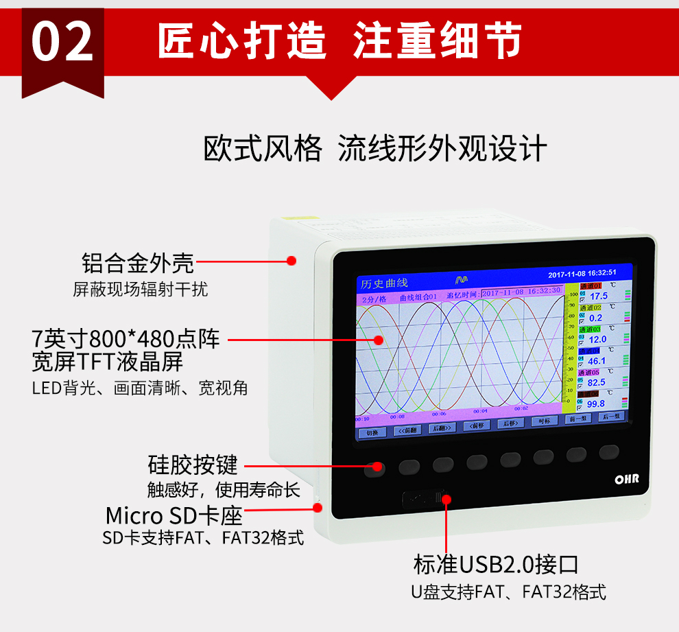 OHR-H700系列多路彩色數(shù)據(jù)采集無紙記錄儀