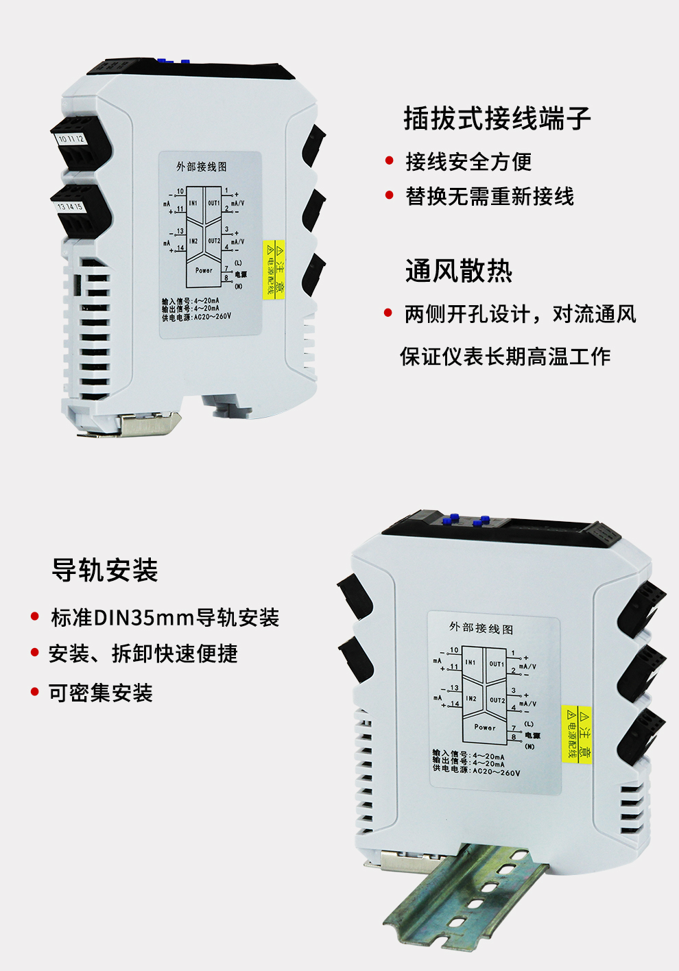 虹潤公司是專業(yè)生產(chǎn)隔離器的國家專精特新“小巨人”企業(yè)。生產(chǎn)的導(dǎo)軌式智能隔離器 ,具有高清顯示單元,參數(shù)可設(shè)置,寬電源供電,響應(yīng)快,帶RS485通訊等特點(diǎn)。產(chǎn)品獲得信號(hào)隔離器、一種二端子模塊、無源信號(hào)隔離器等3項(xiàng)國家發(fā)明專利,主持起草現(xiàn)場設(shè)備工具(FDT)接口規(guī)范、工業(yè)過程測量和控制系統(tǒng)用隔離式安全柵、工業(yè)過程測量和控制系統(tǒng)用配電器等3項(xiàng)國家標(biāo)準(zhǔn),以及通信系統(tǒng)多通道數(shù)據(jù)采集控制終端規(guī)范軍用標(biāo)準(zhǔn),參與國際5G標(biāo)準(zhǔn)制定,取得智能隔離器等2項(xiàng)相關(guān)軟件著作權(quán)。產(chǎn)品廣泛應(yīng)用于電力、石化,冶金、制藥、水處理、機(jī)械配套等各種工業(yè)現(xiàn)場。