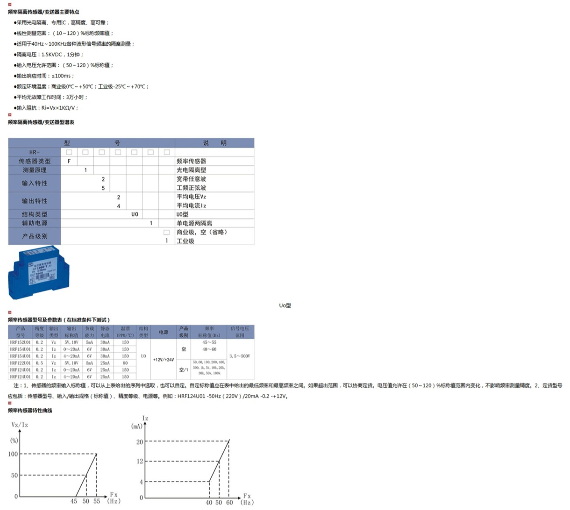 頻率隔離傳感器/變送器是指被測(cè)交流電壓頻率隔離轉(zhuǎn)換成按線性比例輸出的單路標(biāo)準(zhǔn)直流電壓或直流電流。